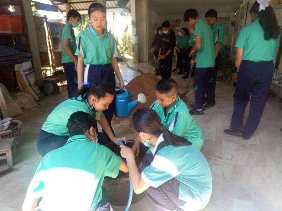 นักเรียนกองทุนเพื่อความเสมอภาคทางการศึกษาเข้าร่วมกิจกรรมการอบรมการเพาะเห็ดเศรษฐกิจ ณ ศูนย์ศึกษาการพัฒนาห้วยฮ่องไคร้ฯ
