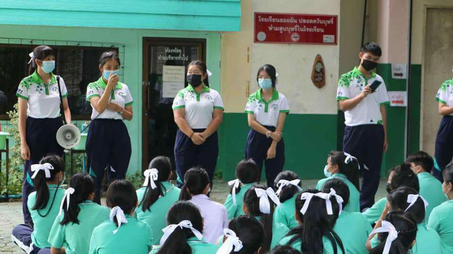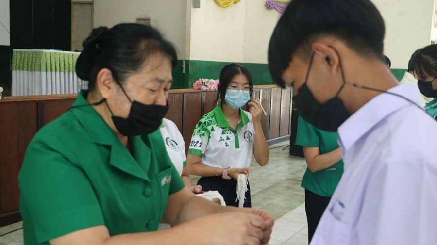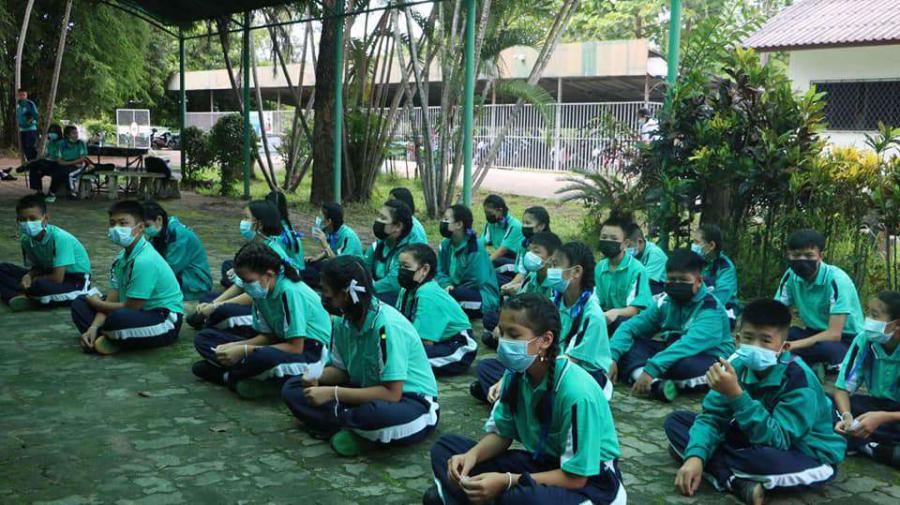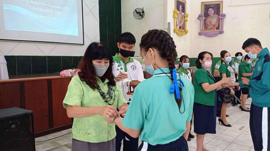 กิจกรรมปฐมนิเทศนักเรียนระดับชั้นมัธยมศึกษาปีที่ 1 และ ปีที่ 4 ประจำปีการศึกษา 2564 เพื่อเป็นการชี้แจงทำความเข้าใจเกี่ยวกับกฎระเบียบ กิจกรรมผูกข้อมือรับขวัญสู่รั้วเขียวขาว และกิจกรรมสานสัมพันธ์จากคณะกรรมการสภานักเรียน S:0