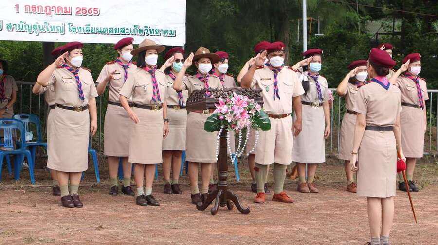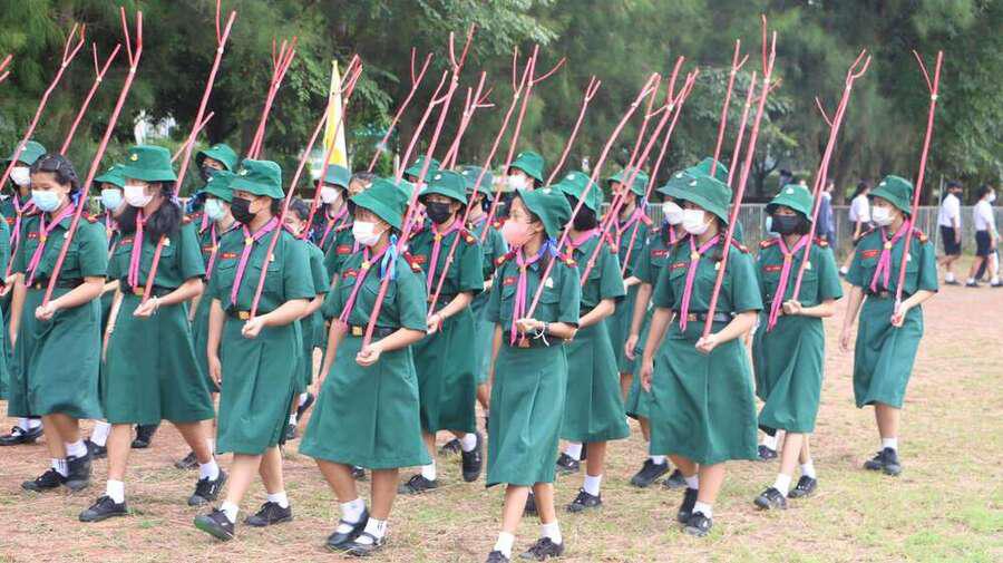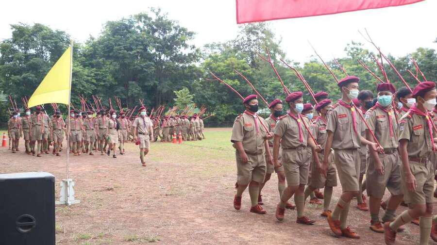 พิธีทบทวนคำปฏิญาณและสวนสนามเนื่องในวันคล้ายวันสถาปนาลูกเสือแห่งชาติ ประจำปี 2565